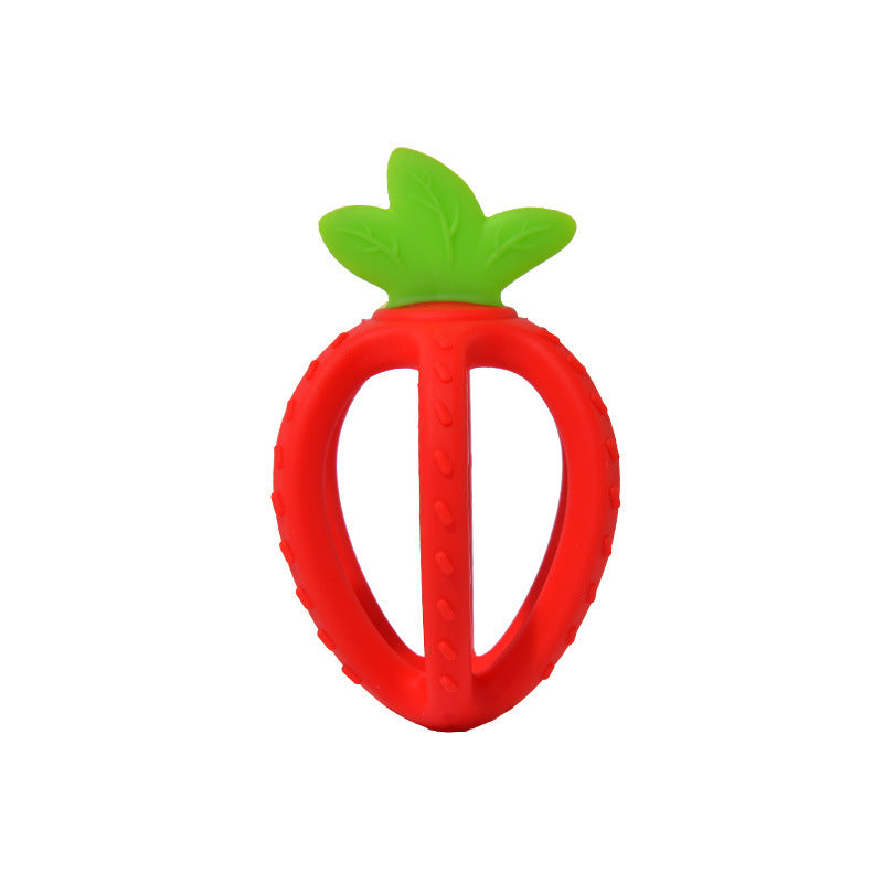 Denna underbara jordgubbe smakar gott när tandköttet kliar och är dessutom väldigt lätt att hålla i.