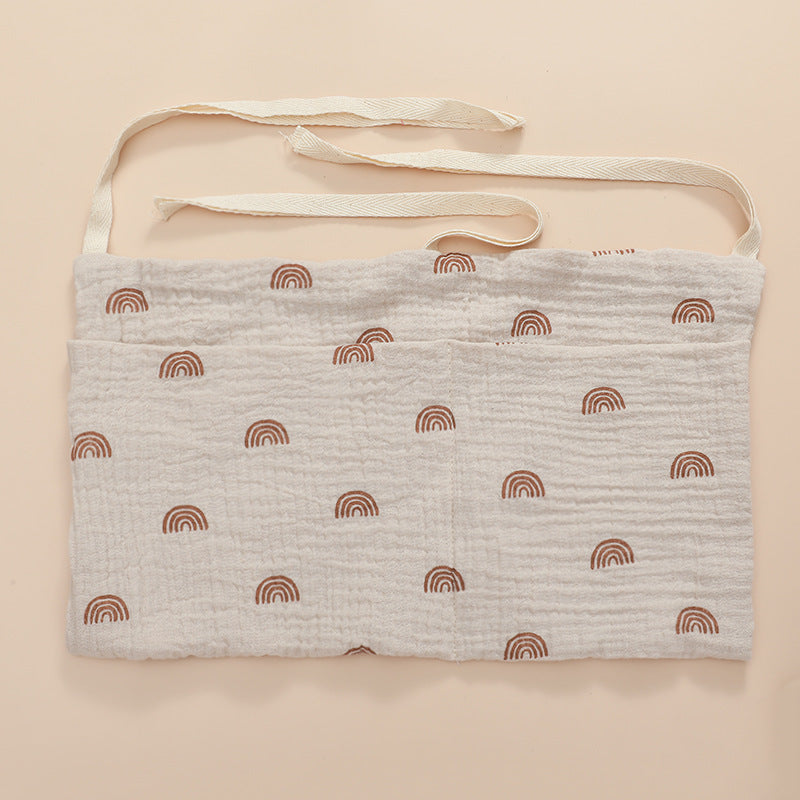 Praktisk hängande ficka med 2 fack. Superbra att förvara till ex. snuttefiltar, nappar, våtservetter, näsdukar, nässug och allt annat som kan komma att behövas vid spjälsängen eller skötbordet.